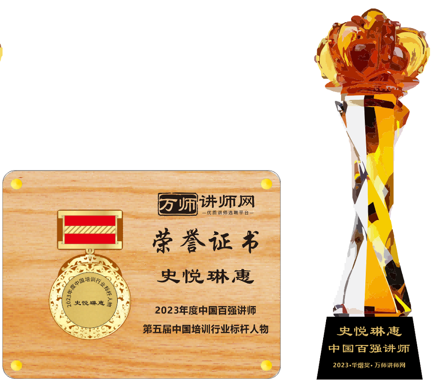 恭喜史悅琳惠老師榮獲萬師講師網2023年度中國百強講師 暨第五屆中國培訓行業標桿人物