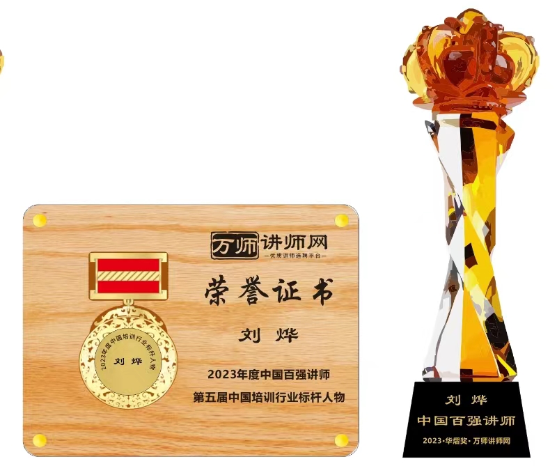恭喜劉燁獲萬師講師網2023年度中國百強講師 暨第五屆中國培訓行業標桿人物