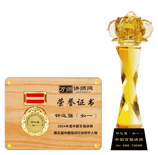 恭喜鐘遠強(如一)老師獲萬師講師網2024年度中國百強講師 暨第五屆中國培訓行業標桿人物